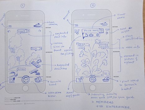 The medium of the Augmented Reality was specifically strategized to translate the Park experience in between two real time layers of physical entities (Plants) and Digital entities (Information, Technology). The AR UI was envisioned using low fidelity pen and paper mockups which were then translated into high-fidelity digital prototypes.